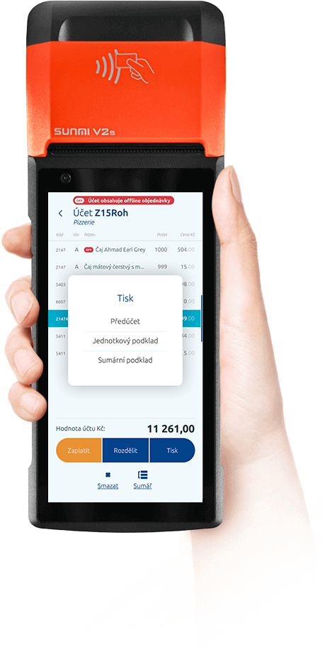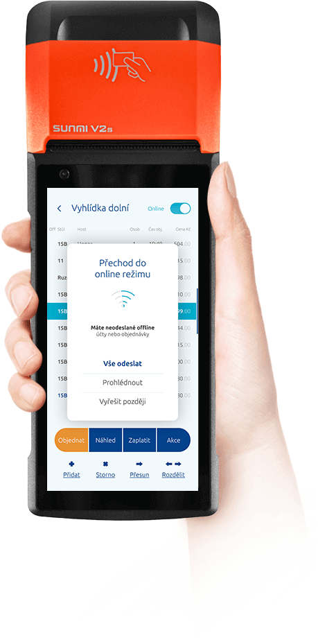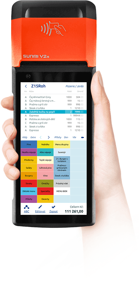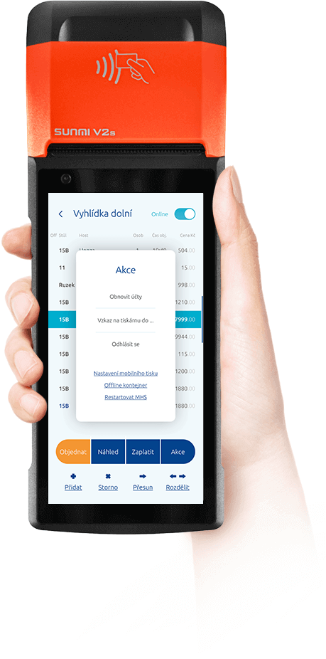 Nově nabízíme zařízení Sunmi V2s s podporou NFC, které umožňuje přijímat platby kartou.
