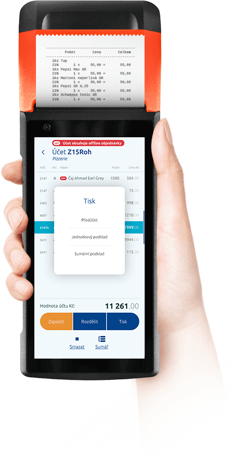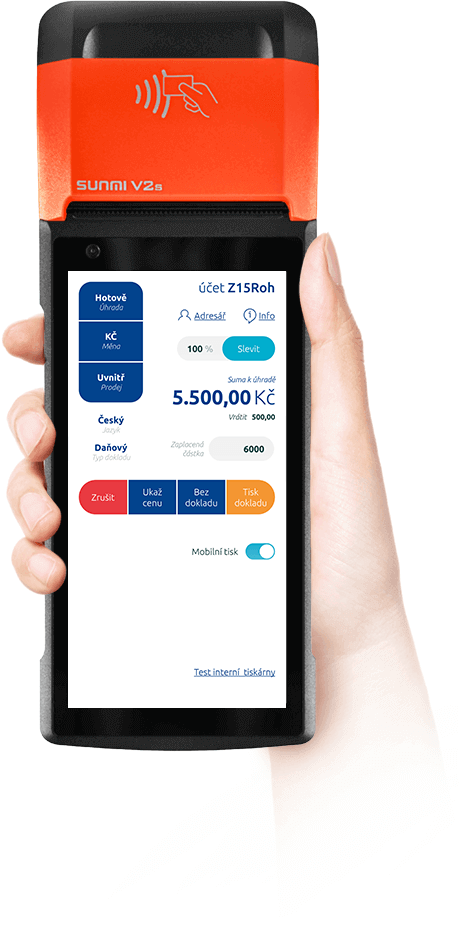 Účtenku lze tisknout na mobilní, nebo stacionární tiskárně
